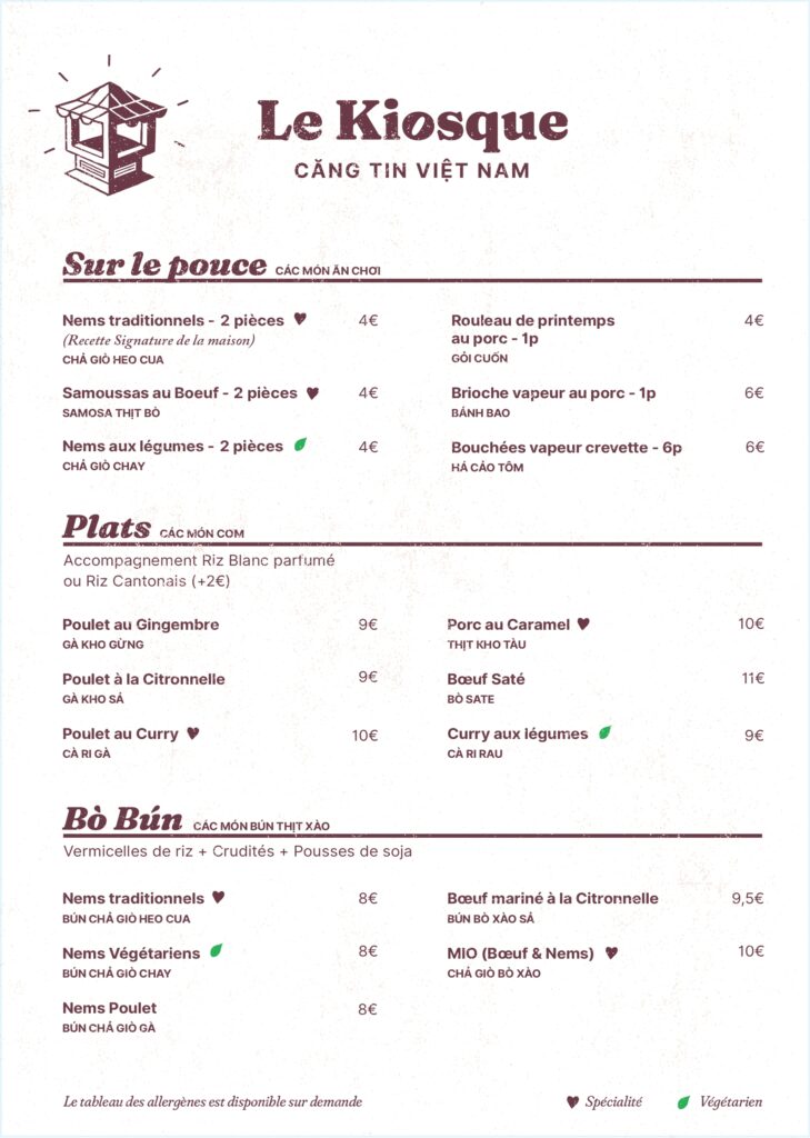 Pas de lézard, ici on cuisine tous les plats phares du Viêt-miam ! Et cerise sur le banh bo, nos petits plats s’entendent avec tous les porte-monnaies, parce que ça ne coûte pas plus cher de bien manger vietnamien.